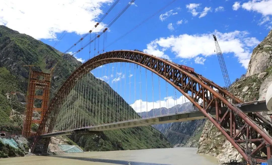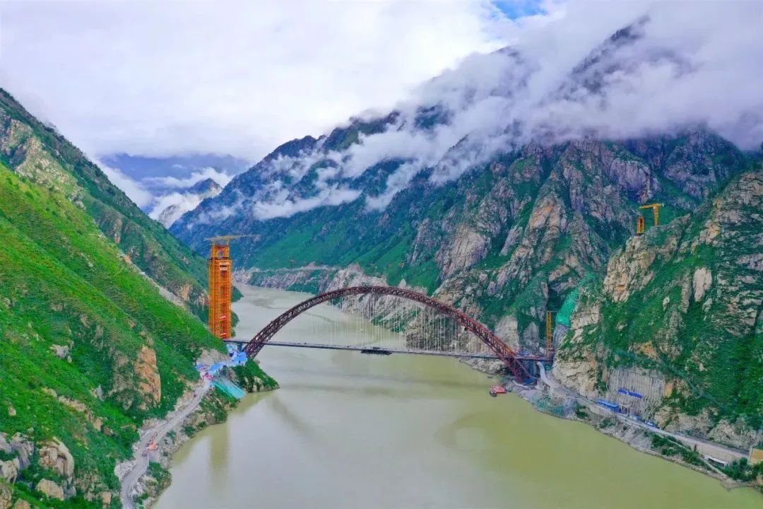 跨度大:藏木雅魯藏布江特大橋?yàn)橹谐惺教峄@鋼管混凝土拱橋,主拱計(jì)算跨徑430米,為世界最大跨度鐵路鋼管混凝土拱橋。
