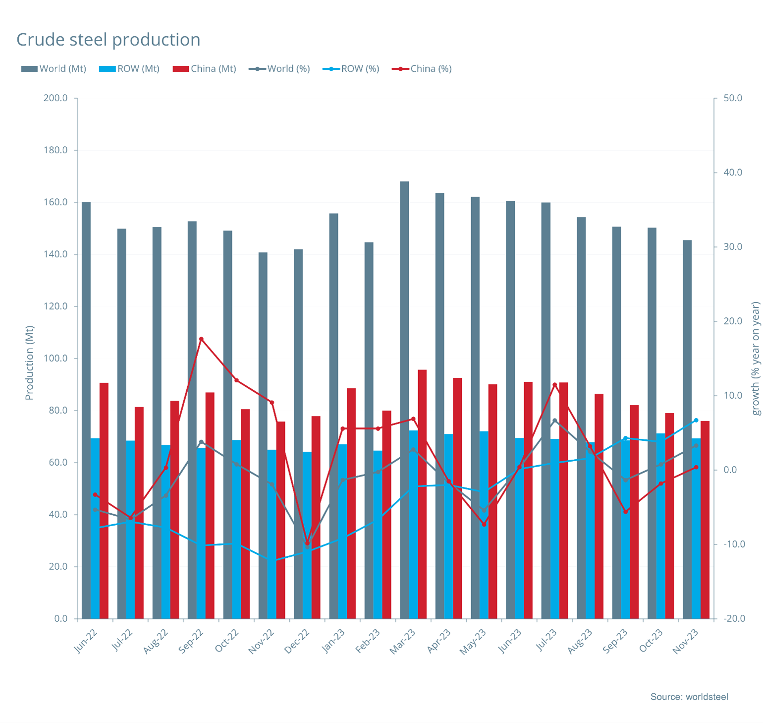 2023年11月全球粗鋼產量