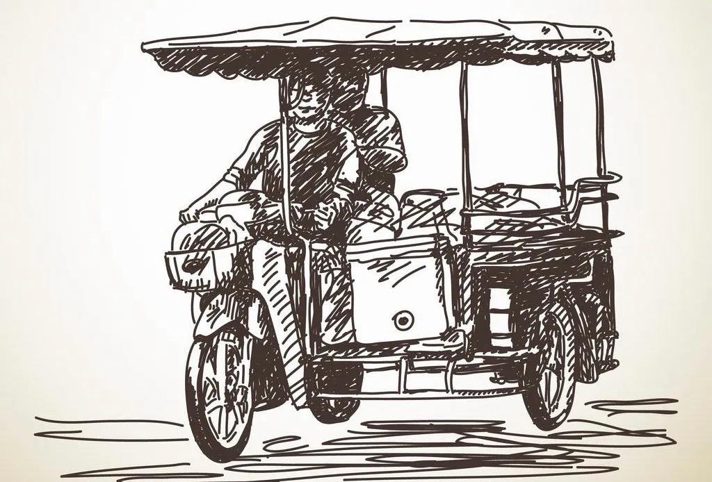 當(dāng)我們從車上取下行李,父親箭步把那輛新買的三輪車推來,裝上包裹,我看出他的臉上洋溢著一股自信,原來是他有了一輛新的電動三輪車。