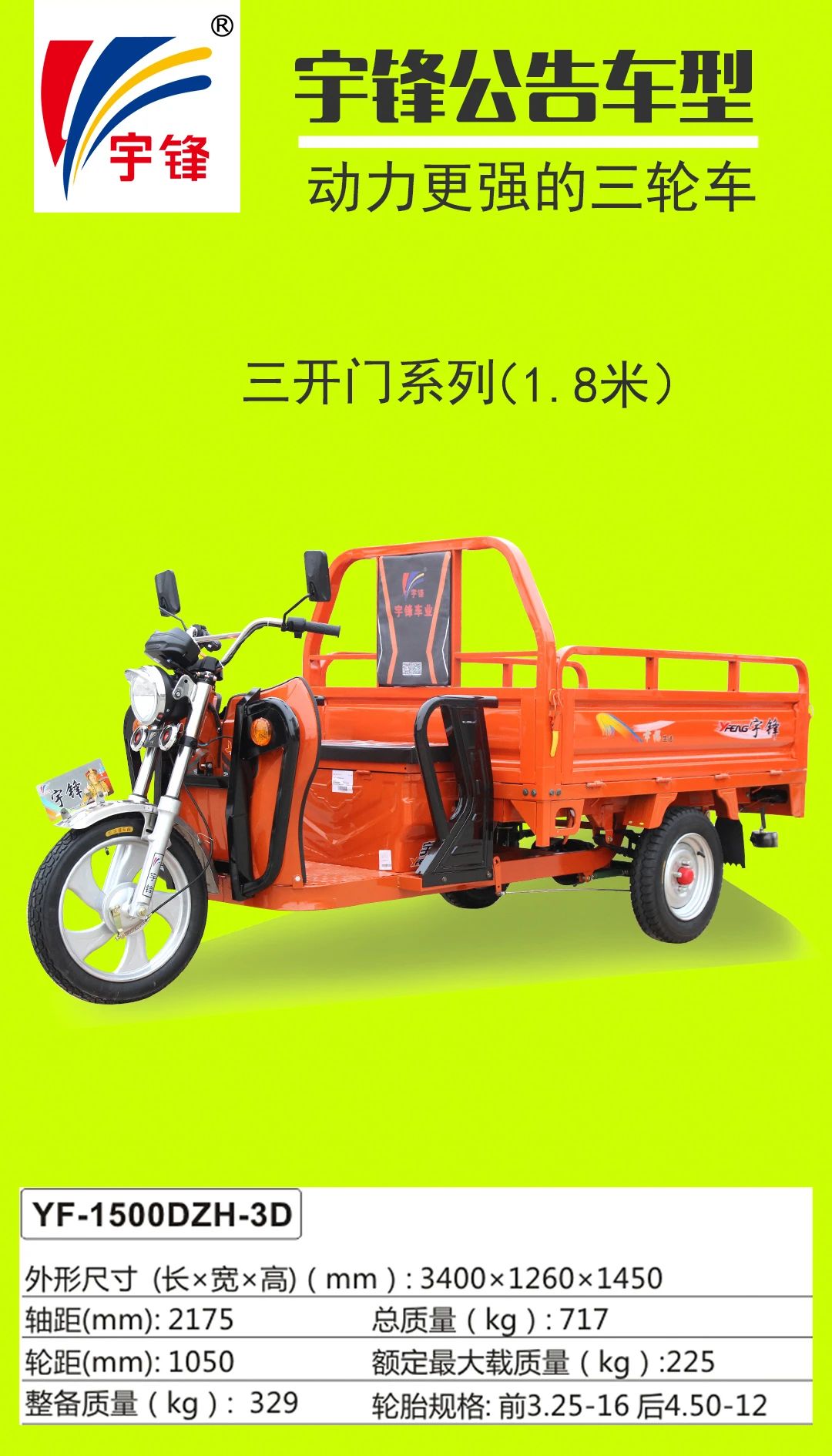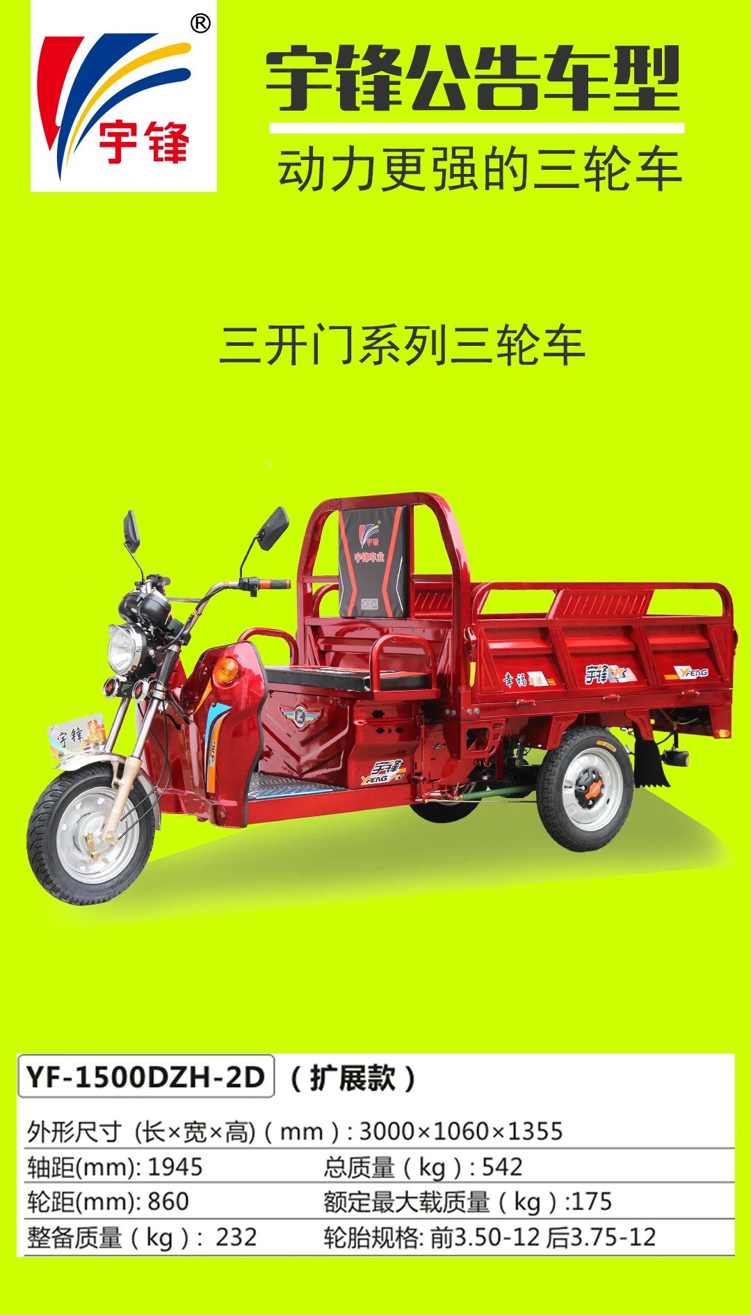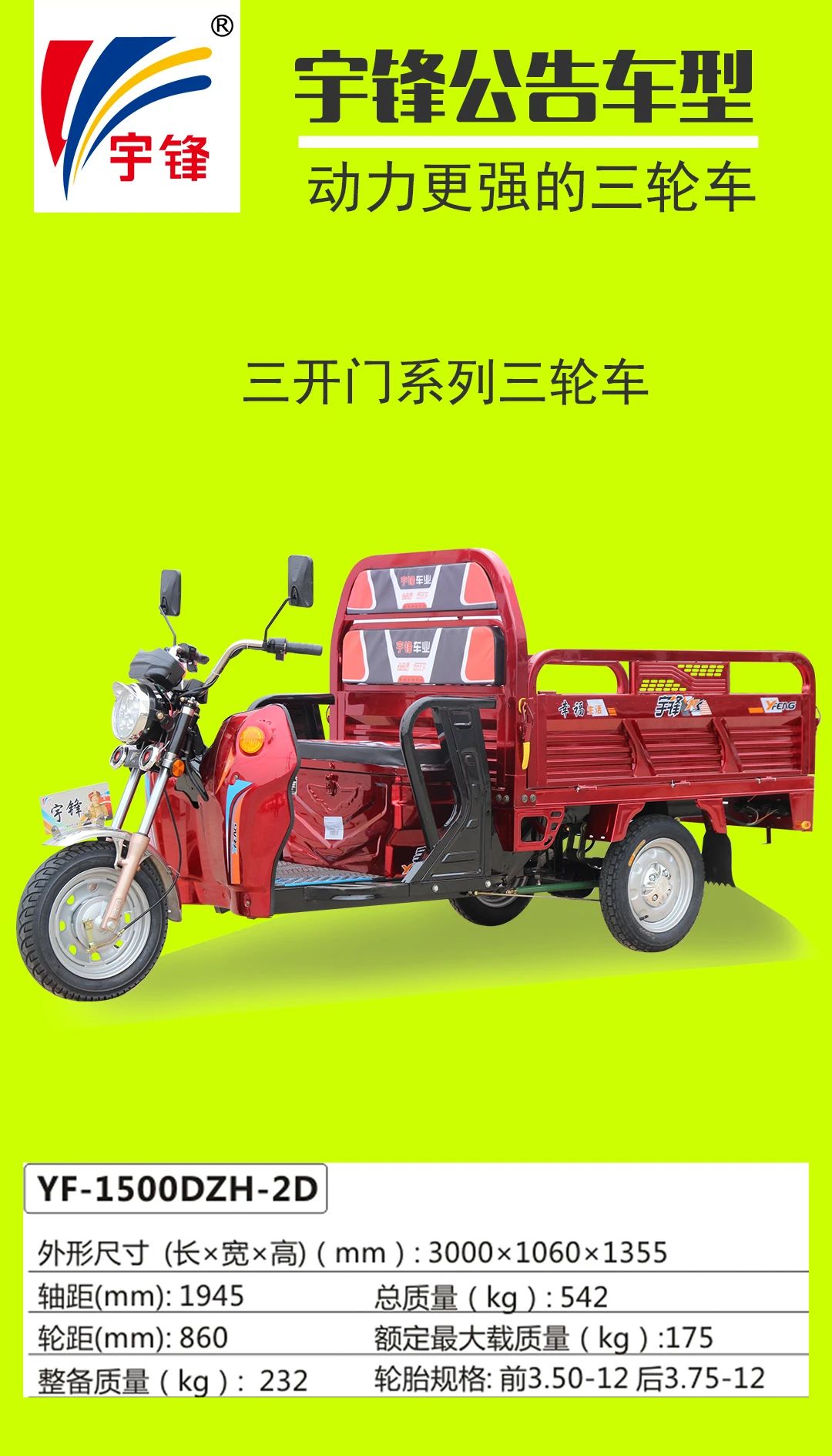 宇鋒電動三輪車部分公告車型一覽表
