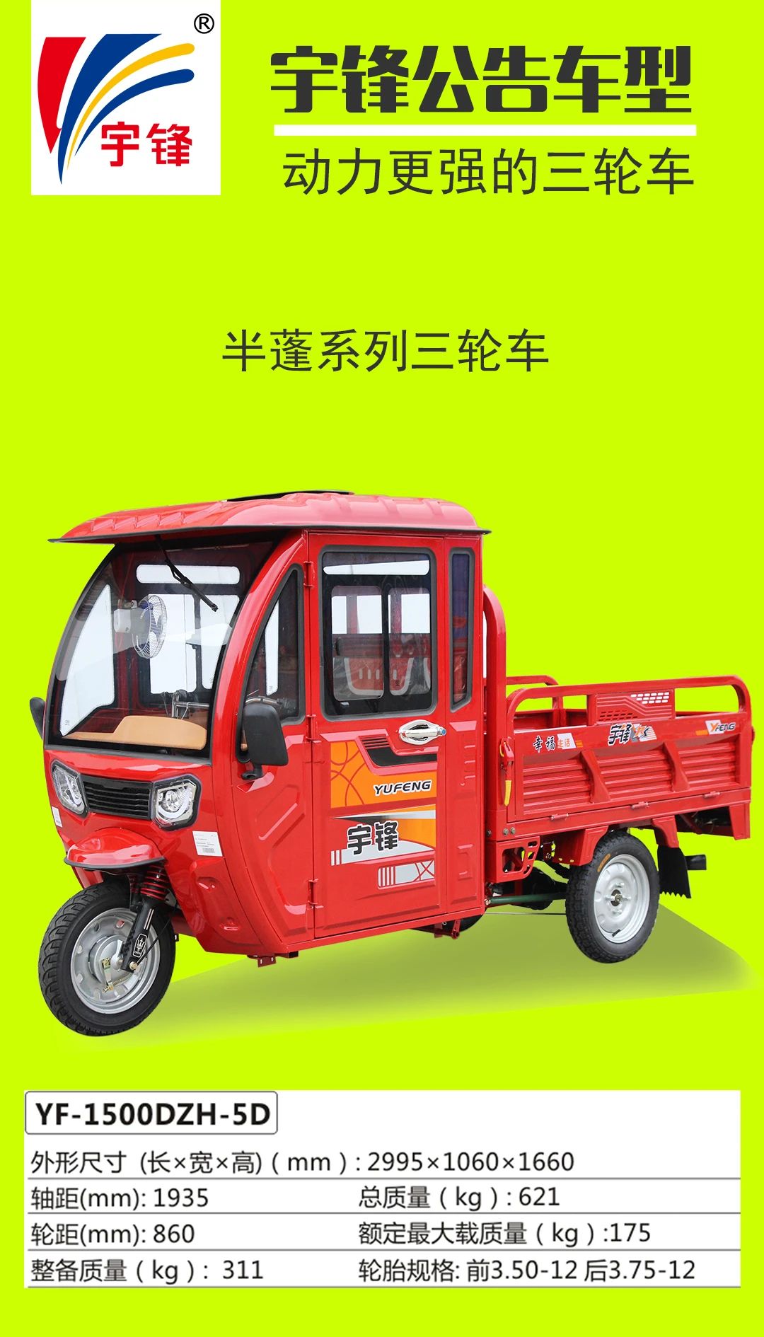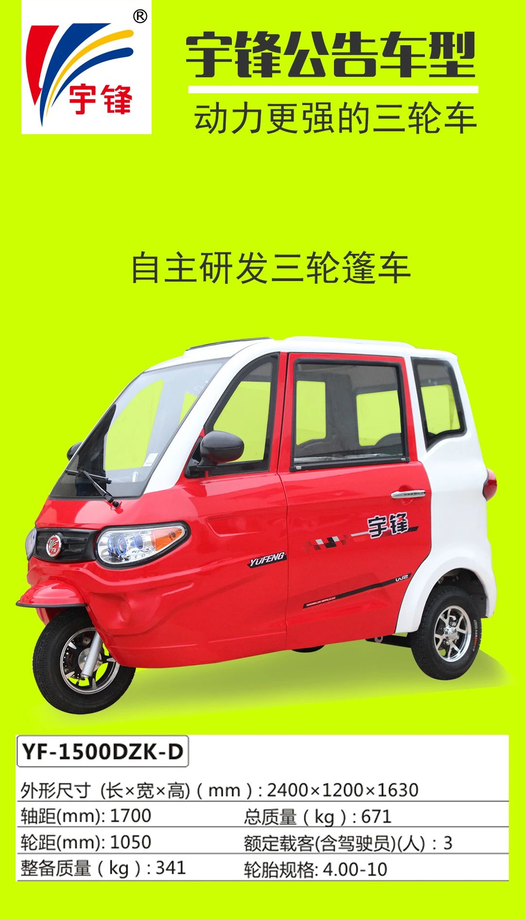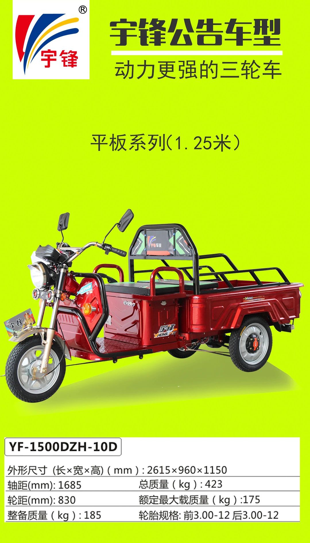 宇鋒電動三輪車部分公告車型一覽表