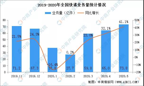 2020年以來,受疫情影響,不少行業放緩,而快遞行業保持較快增長。數據顯示,1-5月份,全國快遞業務量累計完成264.1億件,同比增長18.4%;業務收入累計完成3026.8億元,同比增長9.9%。