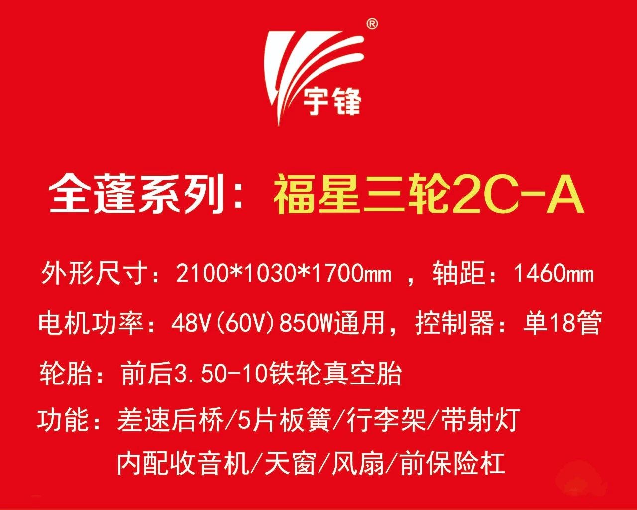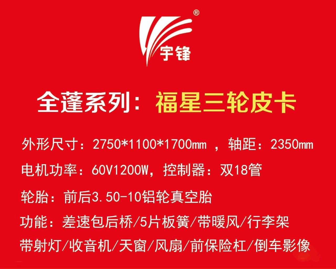 宇鋒新款三輪篷車:福星系列三款產(chǎn)品介紹
